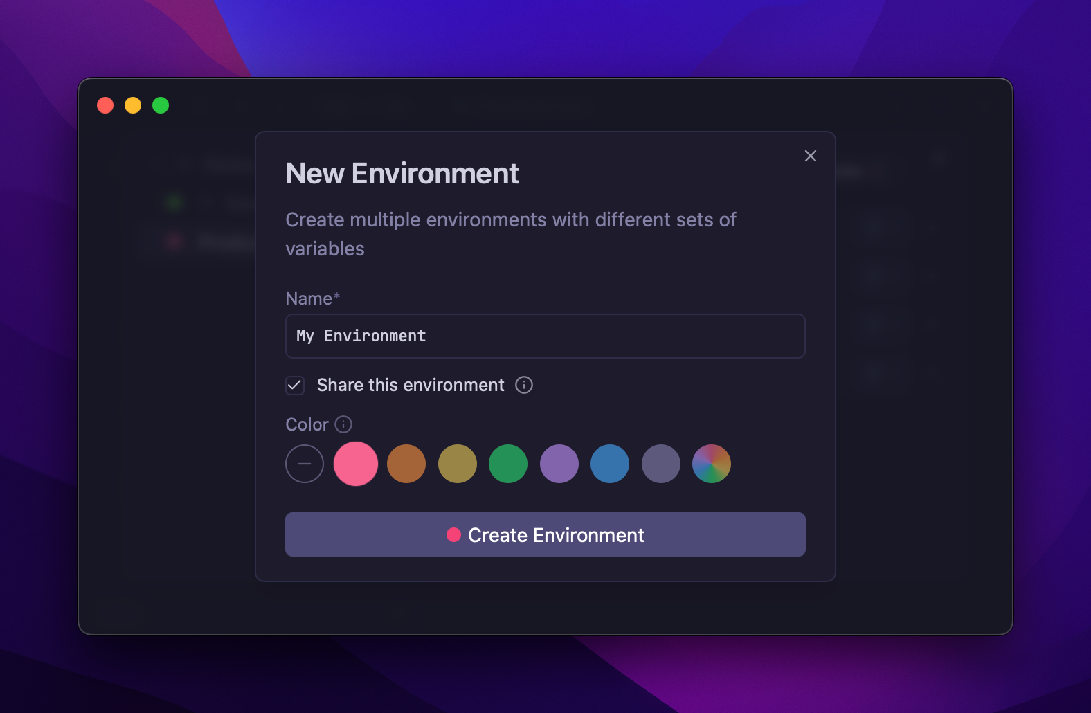 Environiment colors also got an upgrade! It is now possible to assign a theme color to an environment. This means selecting “red” will automatically adapt to match whatever theme is active. (Selecting a custom color (last option) will assign a fixed color value like it used to.)