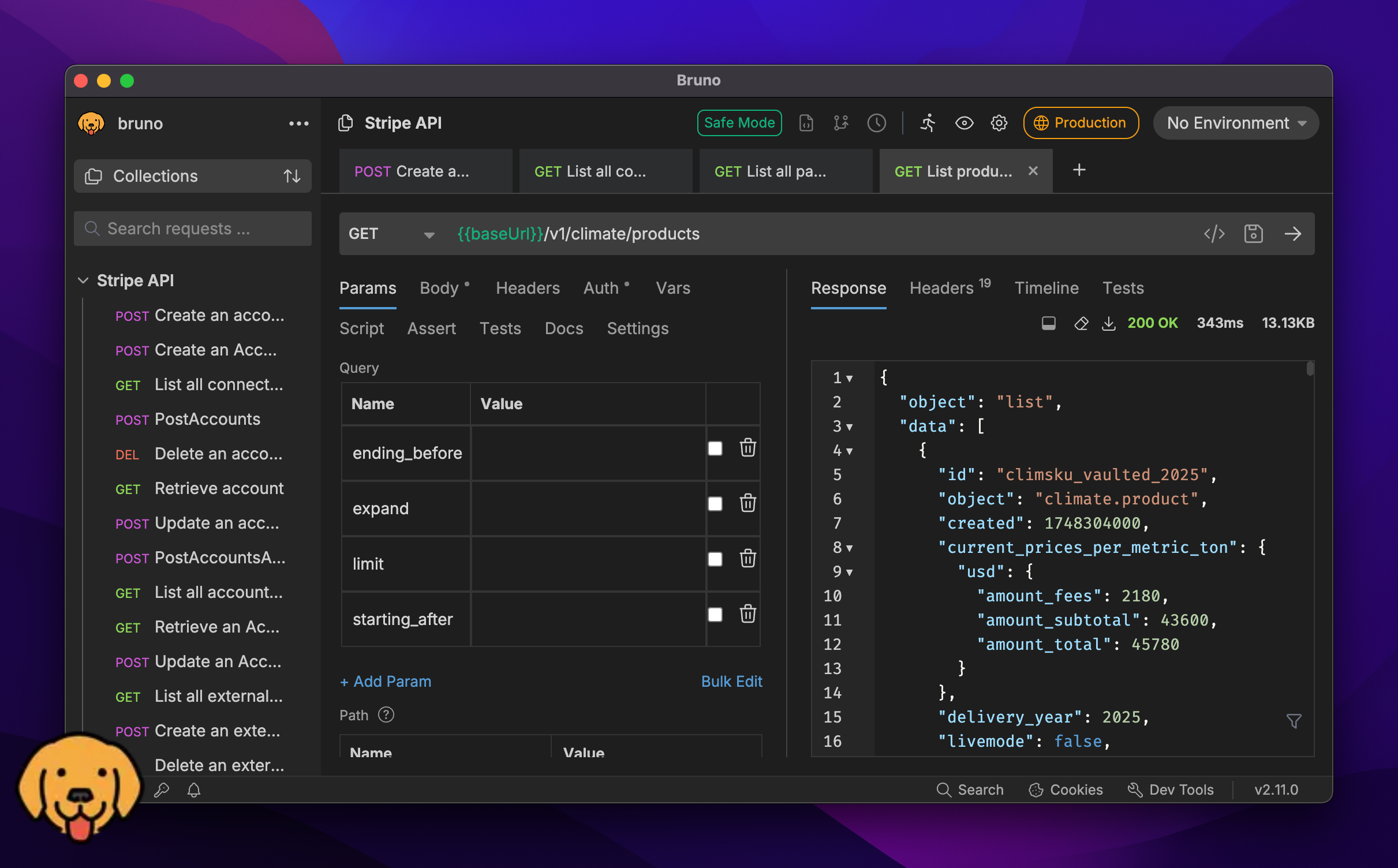 Bruno a cross-platform desktop app, loved for its human-editable file format. It gained popularity in 2023 after Insomnia forced users to have a cloud account —precisely the same reason people are shying away from Postman.