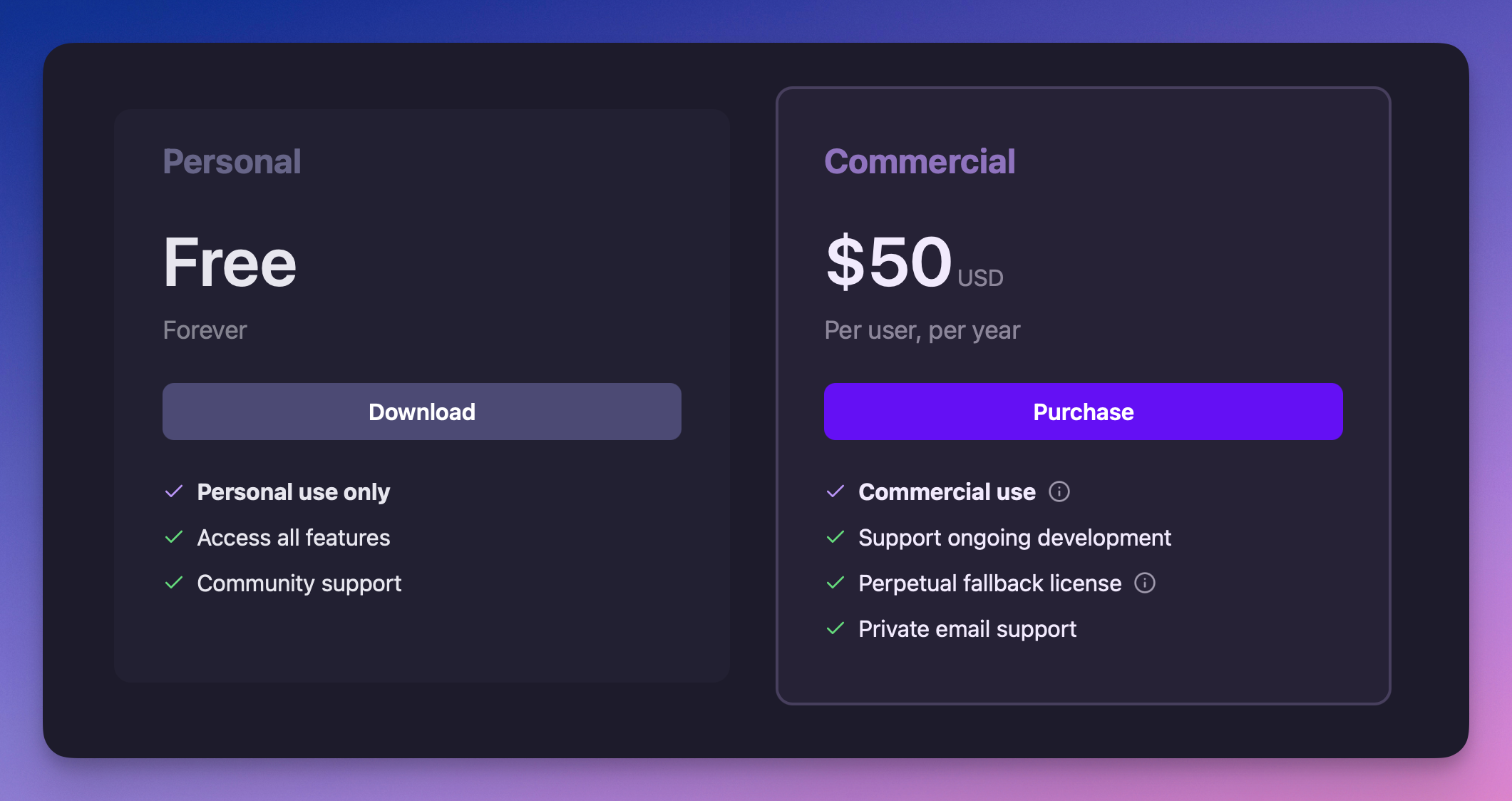 Both Business and Individual plans have been consolidated into a single $50/year license. 🌟