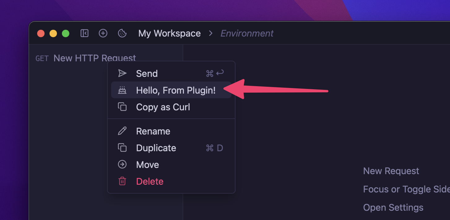 Once installed, give it a test! The generated plugin adds a dummy action to the request context menu that shows a toast when clicked.
