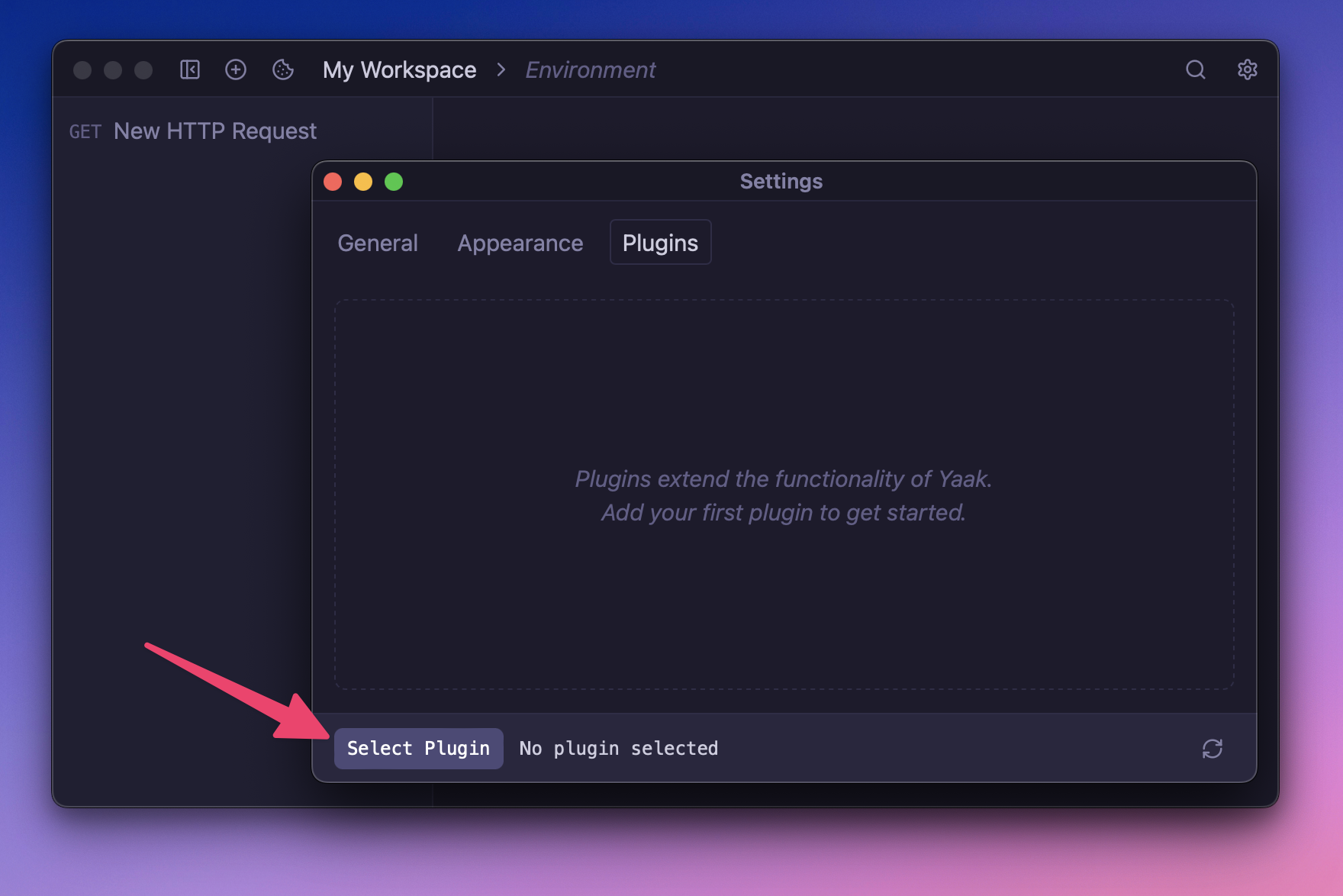 Install the plugin with Yaak from the Settings > Plugins tab. Once complete, Yaak will monitor the plugin directory and reload it on each rebuild.