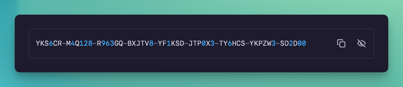 When enabled, you will be asked to backup the workspace key, which will look like YKV2DK-HT1MD0-8EB48W-PPWHVA-TYJT14-1NWBYN-V874M9-RKJ41R-W95MY0. It can be accessed at any time from Workspace Settings but should be backed up in case of system failure. It will also be required to access encrypted data on other devices.