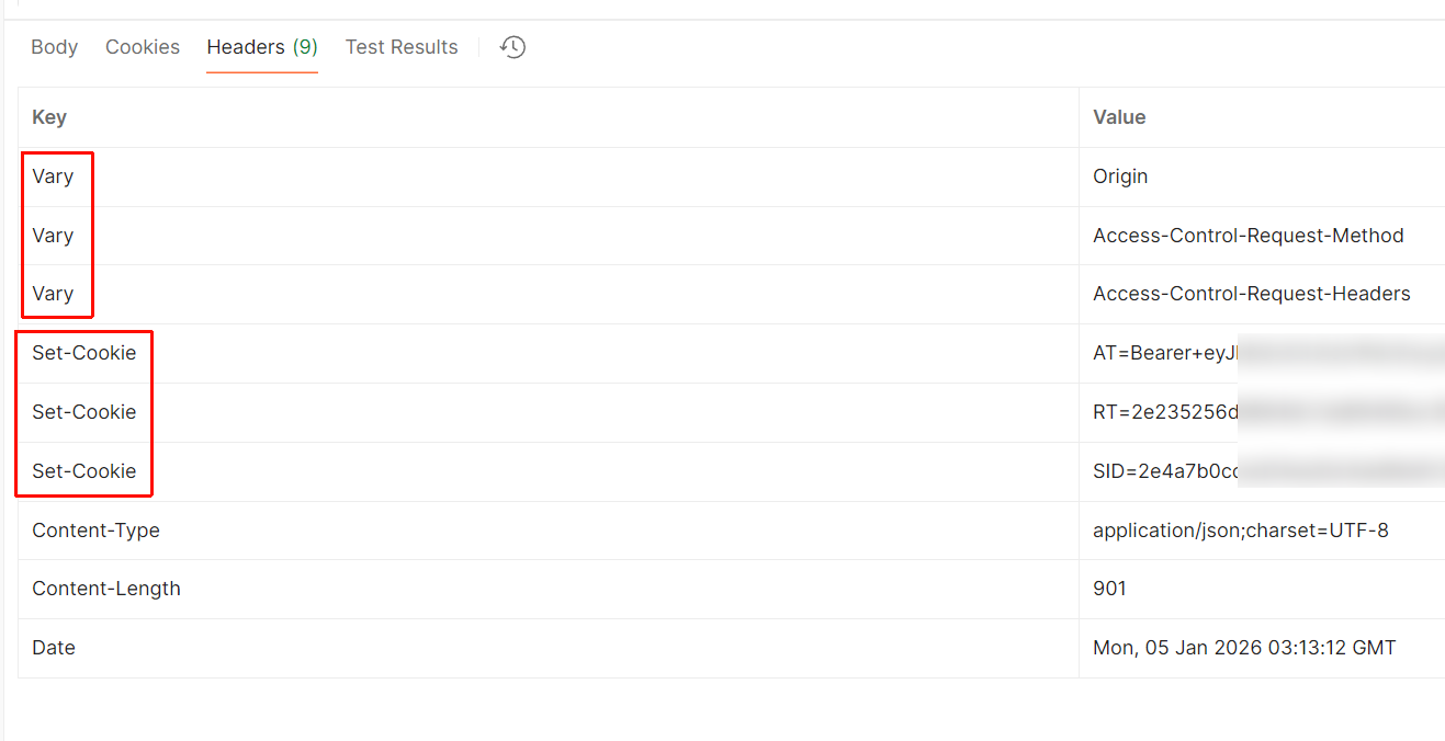 Actual Behavior Only one Set-Cookie header is shown, while other Set-Cookie headers are missing/lost.