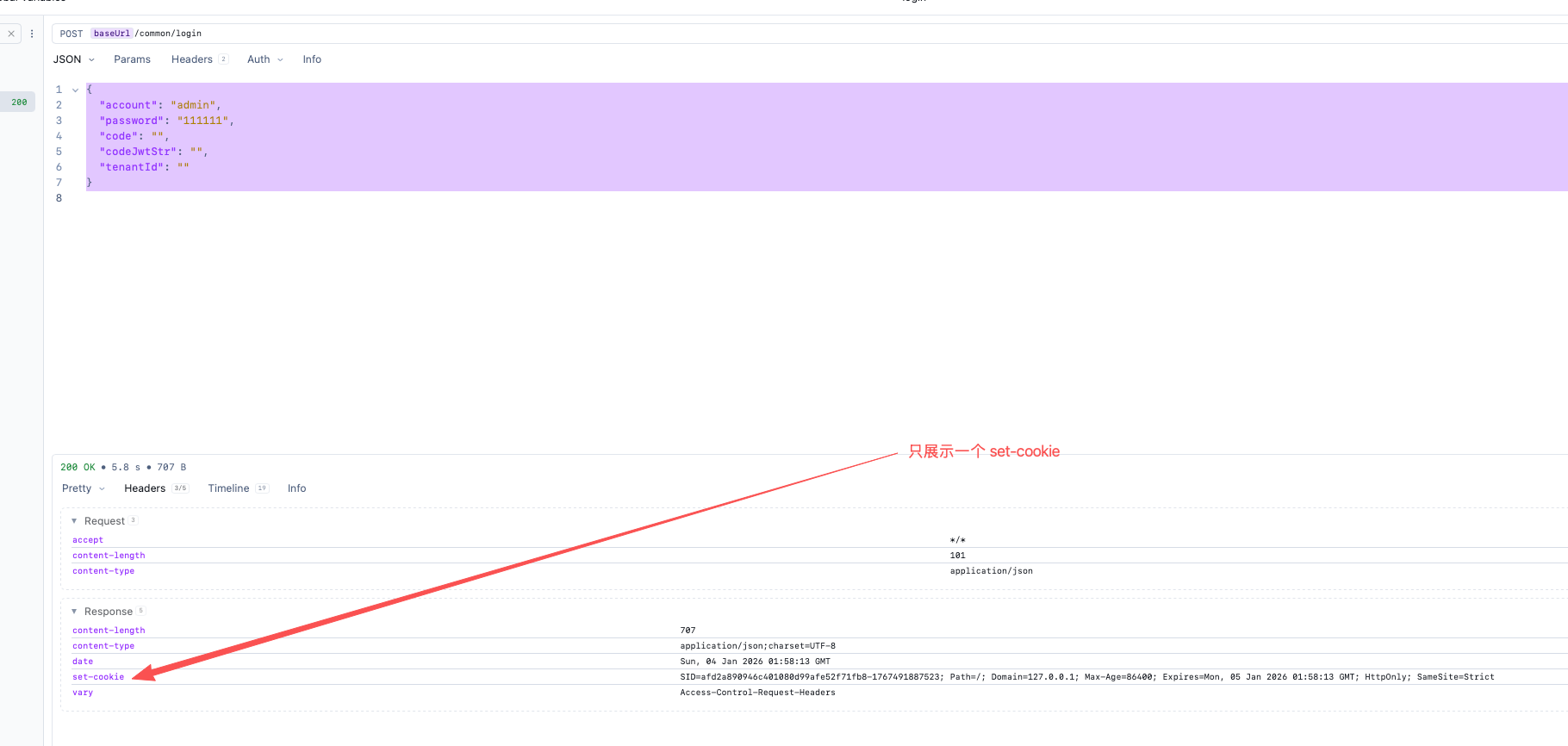 Description When using yaak to call an API, there is a bug in cookie handling. According to the HTTP protocol specification, the response header Set-Cookie allows multiple instances. However, when the response returns multiple cookies, yaak only displays one and the rest are lost.