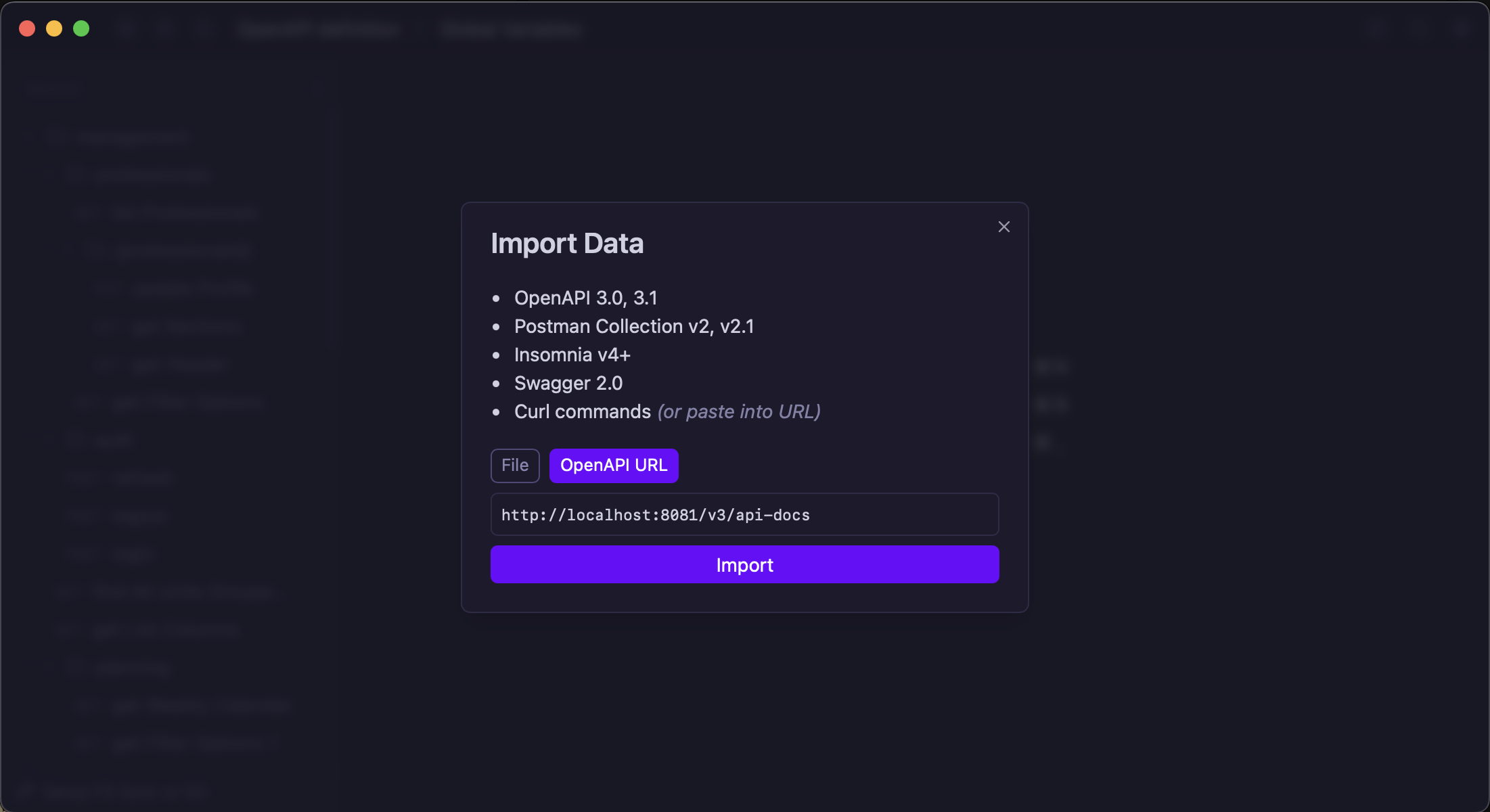 Input an OpenAPI/Swagger URL