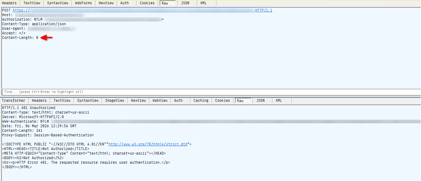 Authorization: NTLM ...header immediately)The second method is enabling the