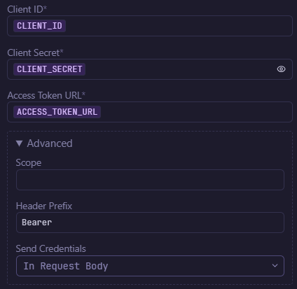 OAuth Advanced section scope reference/env variable