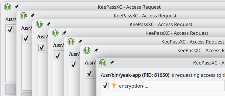 They are all for the same secret (encryption-key@app.yaak.desktop.EncryptionKey:default (keyring v4.0.0-rc.1)).