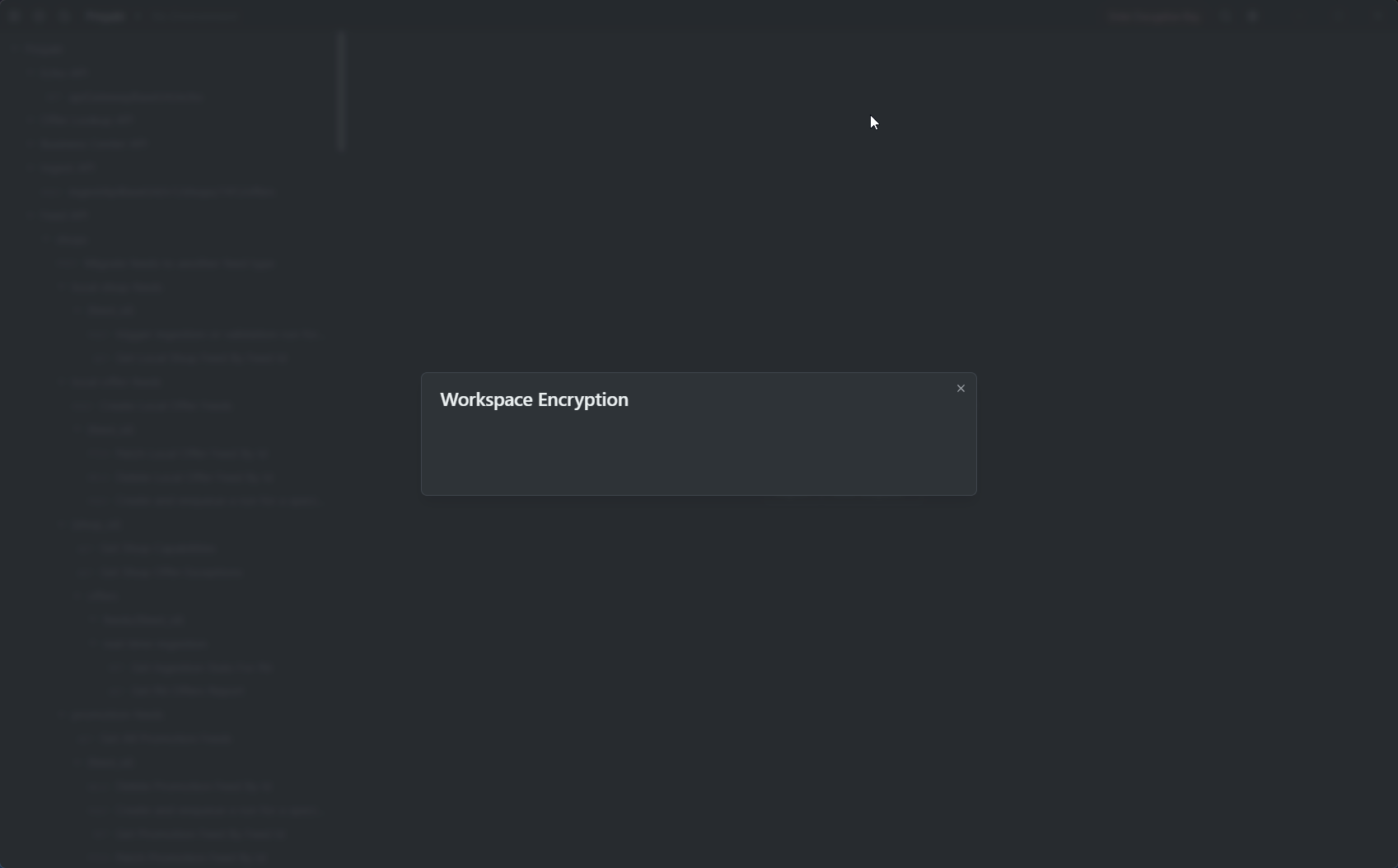 Creating a new Workspace with “Enable Encryption“ checked results in “Workspace Encryption” popup to appear, but clicking on the “Enable Encryption“ button also has no effect.