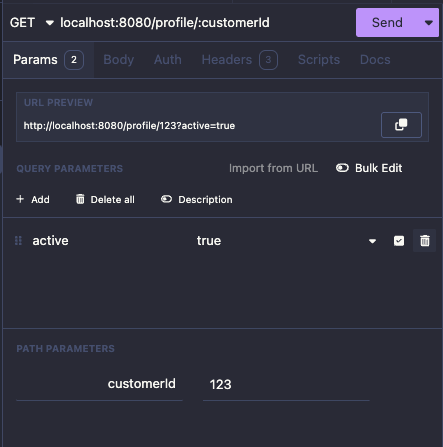 Also, in the Params tab is really difficult to differentiate what is a query param and what is a path param, for example in insomnia: